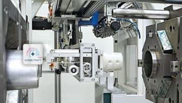 - Vstřikování, dávkování, otevírání a zavírání řízené nezávislými servomotory, detekce polohy optickým snímačem.