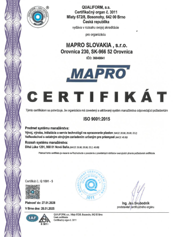 Vývoj, výroba, instalace a servis technologií pro zpracování plastů (SK-NACE 28.96; 28.99; 33.2)