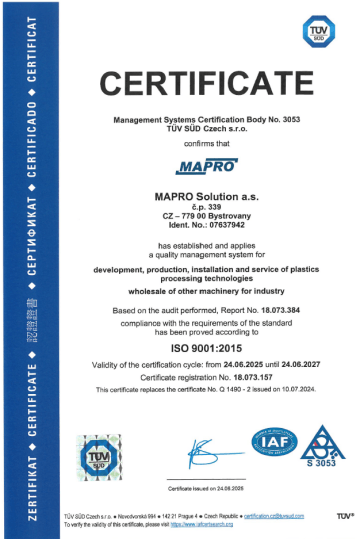 Vývoj, výroba, instalace a servis technologií pro zpracování plastů (CZ-NACE 28.96; 28.99; 33.2)
